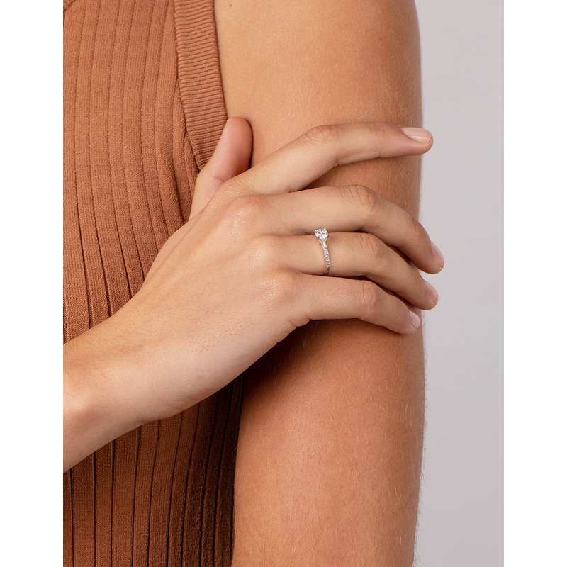 - With a round, centre set diamante stone, bring a touch of elegance to your fingers with this fine pave band in sterling silver.