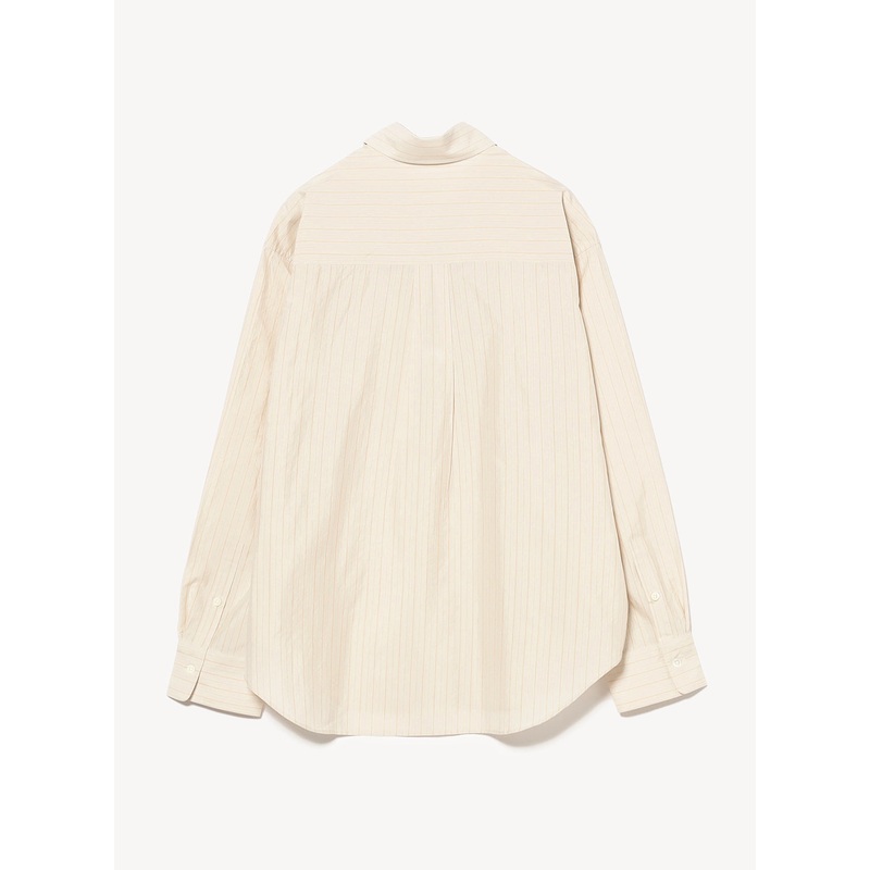 This button-down shirt features a refined fine-stripe pattern in a soft ecru tone. Cut with a relaxed yet tailored silhouette, it offers structure without sacrificing ease, making it an ideal staple for both work and weekend wear.