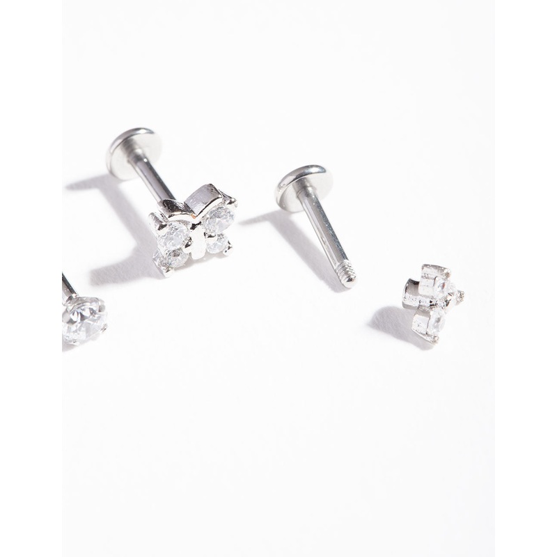 If you love piercings, the surgical steel body jewellery range from Lovisa is perfect for you. Pick up one of these reliable and timeless styles and curate your ear stack with Lovisa’s collection of clickers, flat backs, barbells and more. This pack comes with a trio of flat back styles with a butterfly motif and diamante embellishments. They have surgical steel posts.