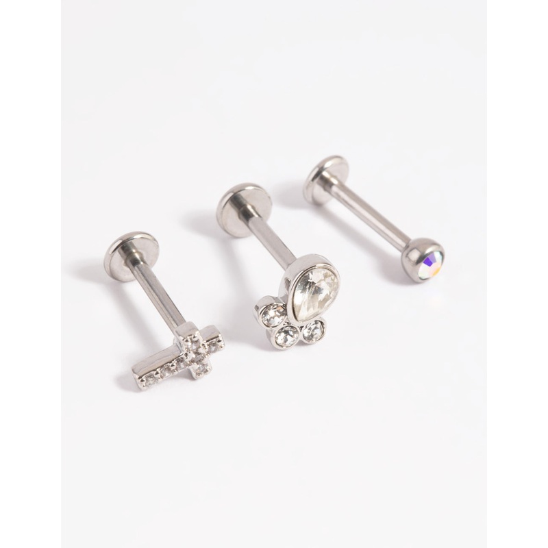 Show off your individuality with Lovisa body jewellery! Our premium body jewellery is made with quality surgical steel to avoid skin irriation and ensure pieces are comfortable for day-to-day wear. This earring pack includes an array of earrings with flat, smooth backings which are suitable for cartilage piercings and ideal for ear stacking.