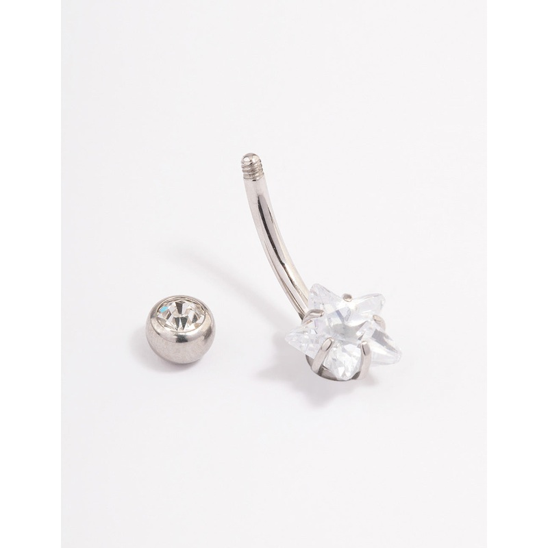 Surgical Steel Cubic Zirconia Bezel & Star Belly Ring