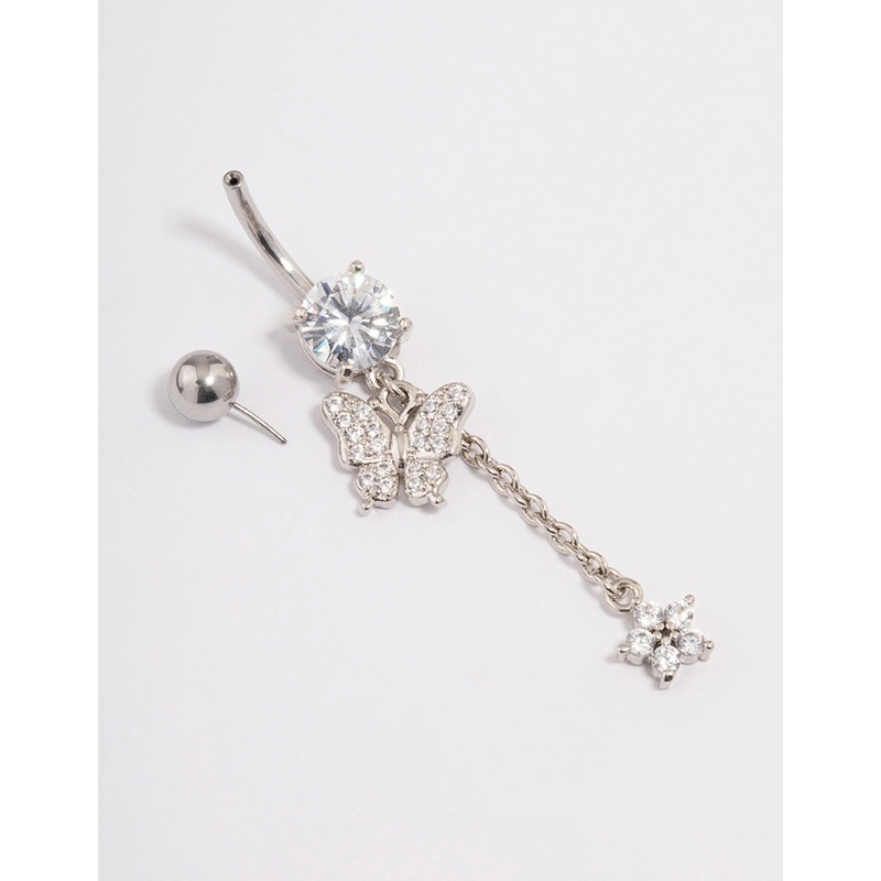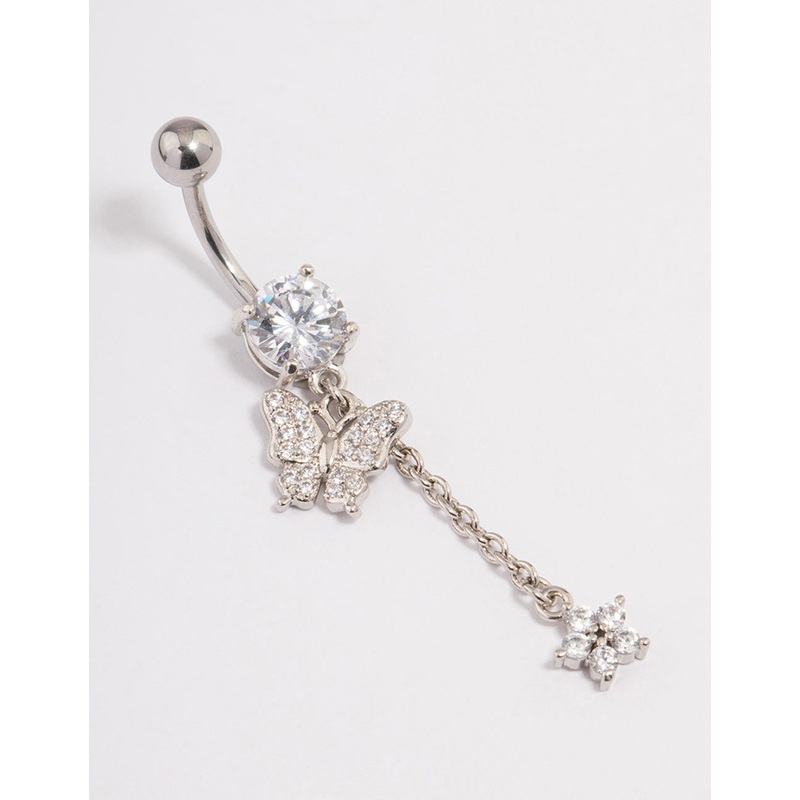 Surgical Steel Cubic Zirconia Butterfly Chain Belly Ring
