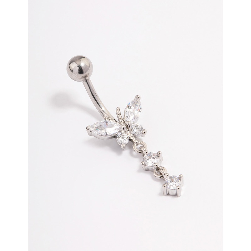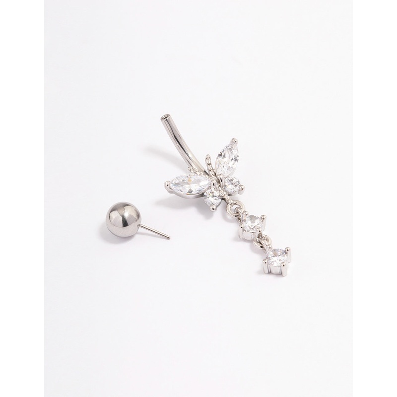 Surgical Steel Cubic Zirconia Butterfly Drop Belly Ring