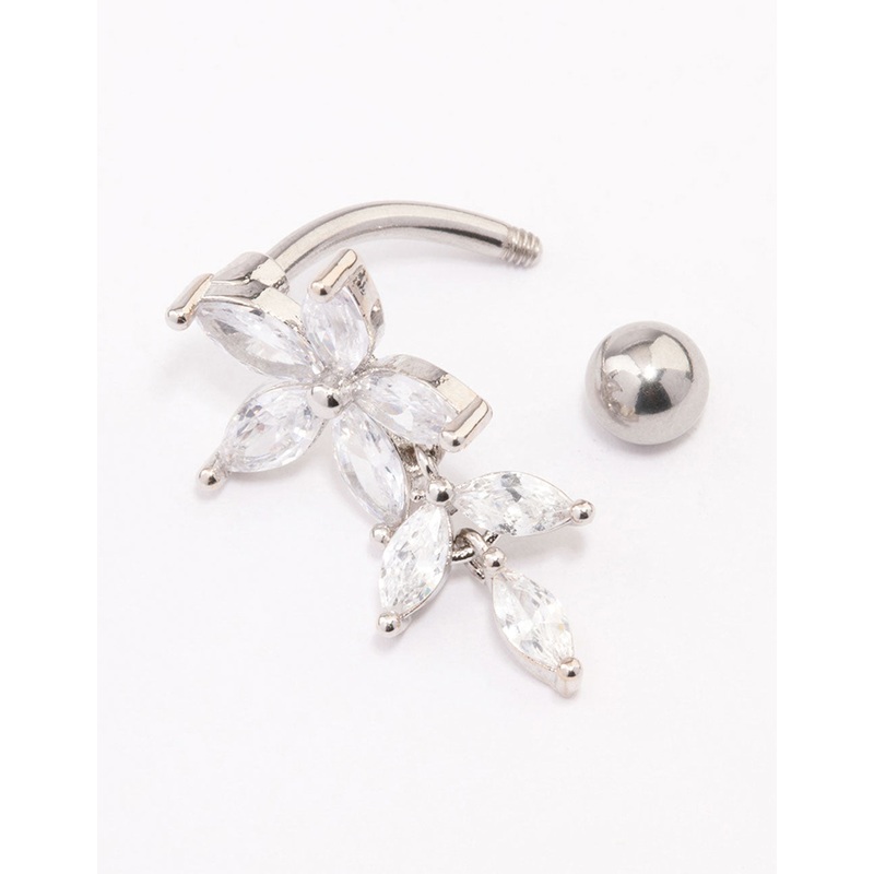 • This belly piercing features a floral, marquise design crafted from cubic zirconia crystals for a hint of sparkle.