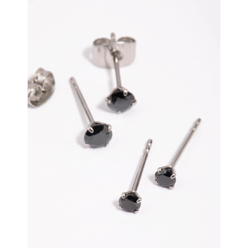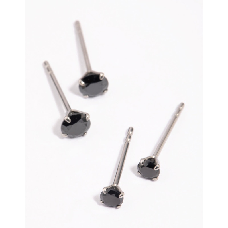 Surgical Steel Graduating Black Cubic Zirconia Stud Earrings 2-Pack