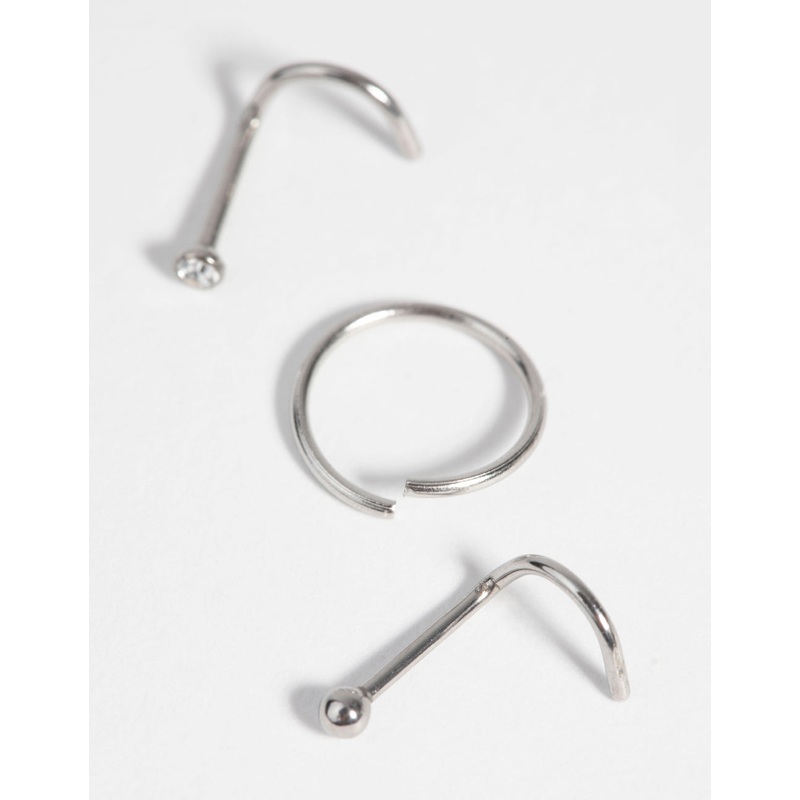 Surgical Steel Nose Stud & Ring Pack with Diamantes