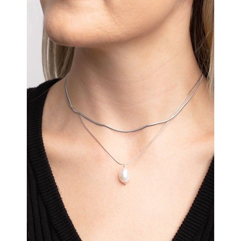 Surgical Steel Snake Chain & Freshwater Pearl Necklace