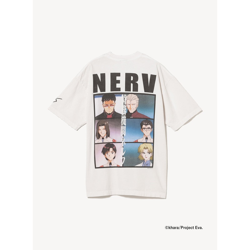 A striking graphic tee from the EVANGELION:95 collection, featuring a bold back print of the six principal NERV pilots from the series opening sequence. A subtle “95” icon adorns the left sleeve while the front sports a clean NERV logo.