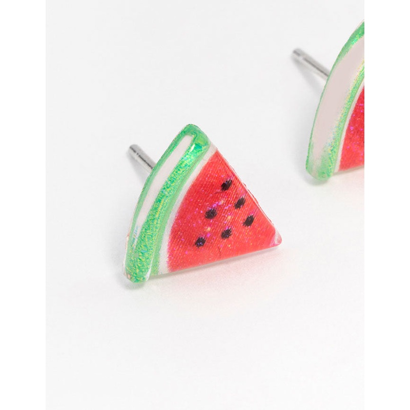 Bring some playfulness with these fun Watermelon Stud Earrings, featuring a bright green rind and pink design inspired by the popular summer fruit. A lightweight and affordable choice, these earrings are a cheerful addition to any outfit.