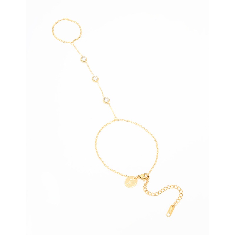 Add a touch of boho elegance to your look with this Waterproof Gold Plated Stainless Steel Diamante Bezel Hand Chain. This dainty yet eye-catching jewellery piece features sparkling diamantes set in bezel designs, all plated in luxurious gold for a timeless finish. Perfect for festivals, beach days, or adding flair to your everyday style, this hand chain sits gracefully across your wrist and fingers, creating a chic, layered jewellery effect. Pair it with flowy dresses, stacked rings, or even a simple jeans-and-tee combo for effortless boho vibes. Designed to be waterproof and durable, this hand chain is as practical as it is stylishideal for those who want beauty and functionality in one.