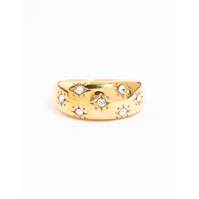 Waterproof Gold Plated Stainless Steel Diamante Scatter Band Ring