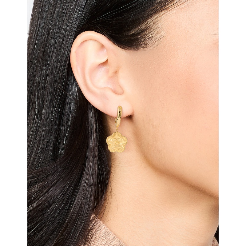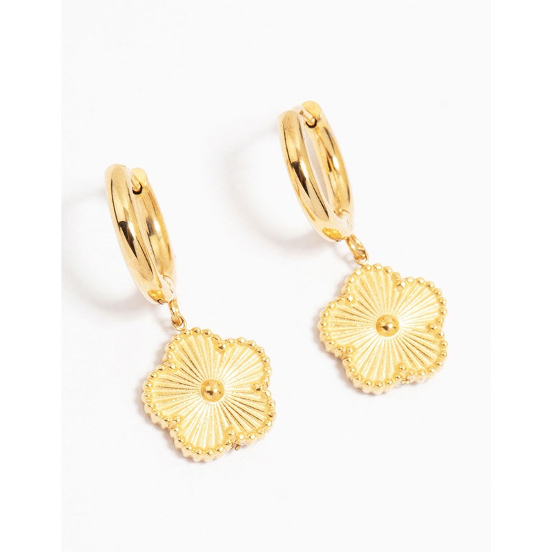 Waterproof Gold Plated Stainless Steel Flower Drop Hoop Earrings