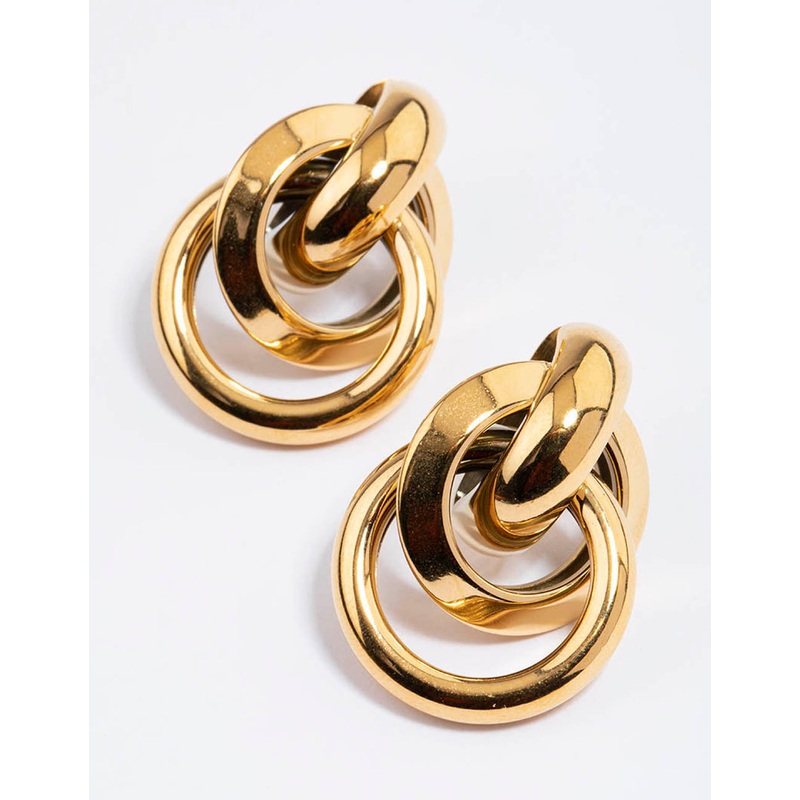 Waterproof Gold Plated Stainless Steel Knotted Link Drop Earrings