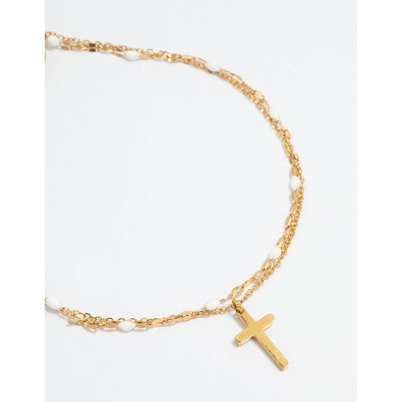 Waterproof Gold Plated Stainless Steel Layered Cross Bracelet