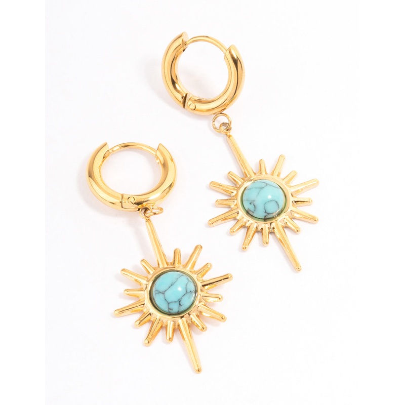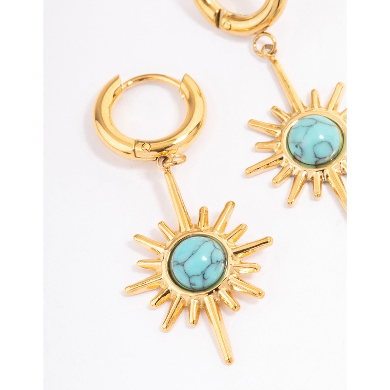 Waterproof Gold Plated Stainless Steel Semi Precious Turquoise Sunshine Huggie Hoops