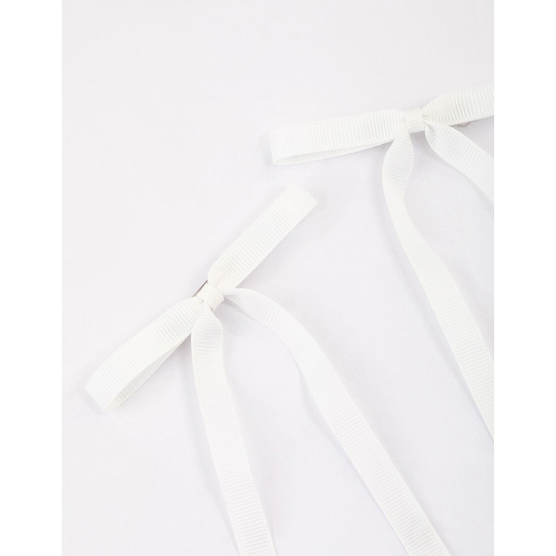 - This set of white fabric bows comes in a pack of two.