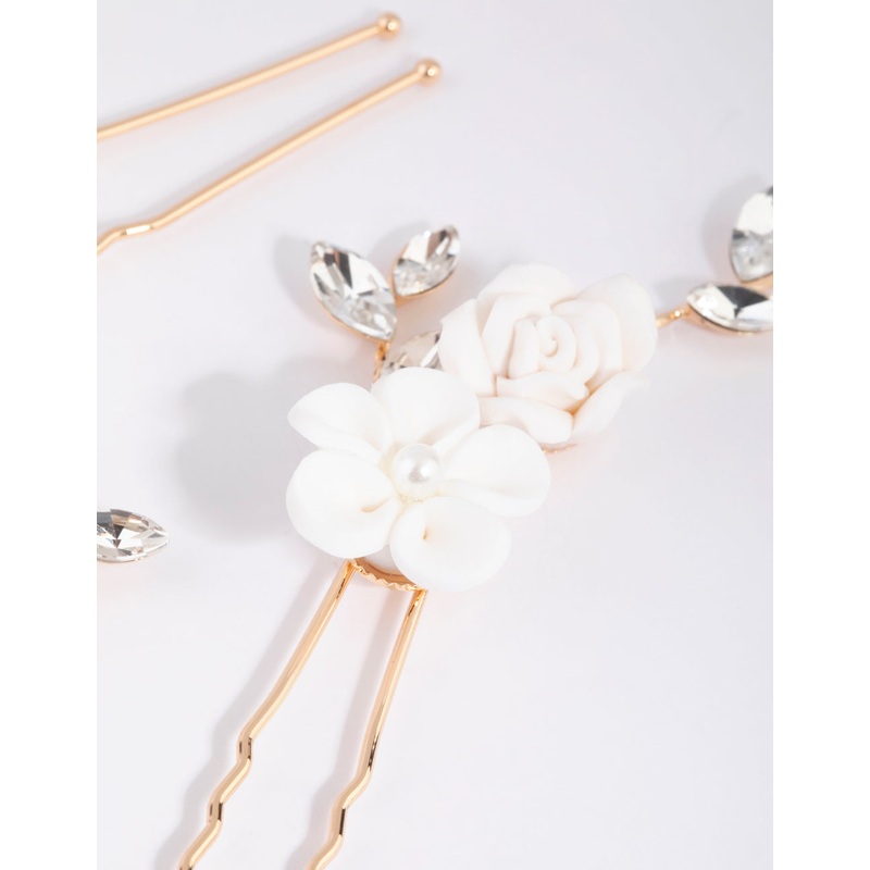 White Flower Hair Pin Pack