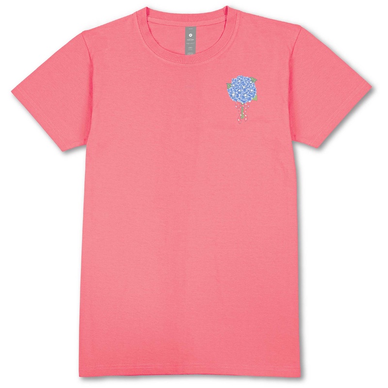 Pink short sleeve shirt with the phrase ‘American honey’ and an American flag with floral detailing. Simply Southern design below. Similar design on left chest.