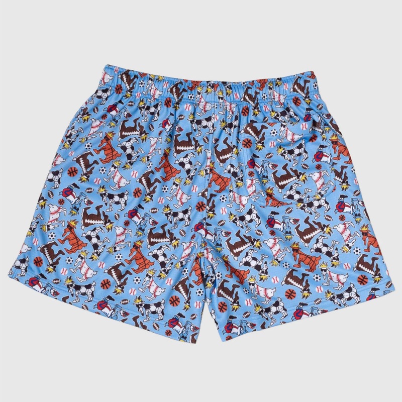 The Sports AOP Mesh Shorts feature an all-over print of sports-branded GOATs in a beautiful Carolina blue, combining comfort and style for everyday wear. Made with breathable closed-hole mesh and moisture-wicking fabric, these shorts keep you cool and dry whether you’re spending weekends throwing touchdowns or watching them.